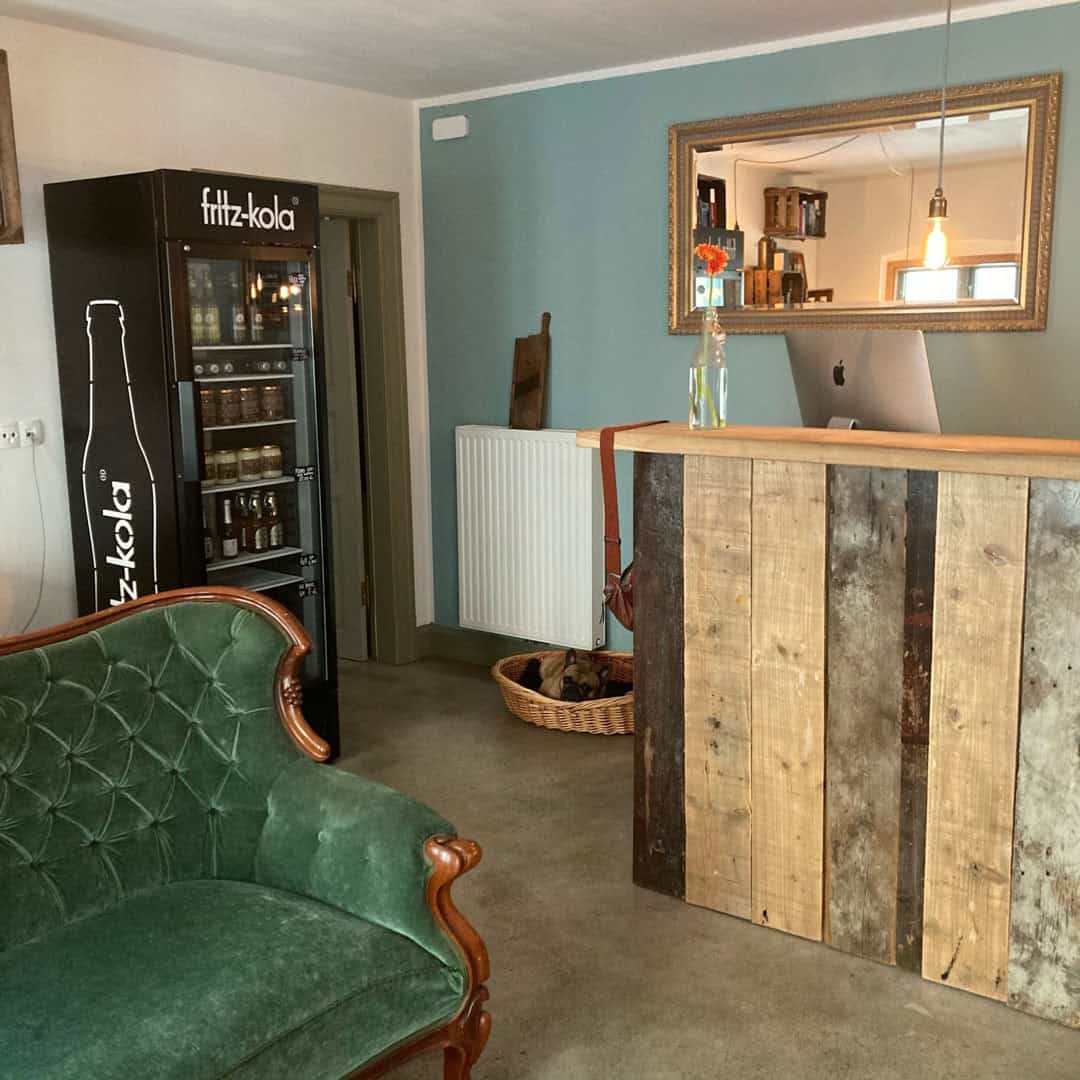 Rezeption und Gästeküche im (verbundenen) Nebengebäude über eine Außentreppe zu erreichen (insgesamt ca. 320 m²).