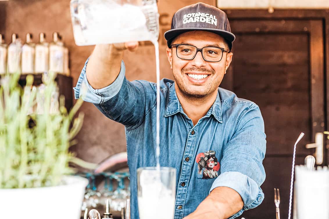 Der Botanical-Garden-Inhaber setzt auf feinfühlige Kreationen aus selbstangesetzten Kräuterlikören und Spirituosen, wie etwa den Zirben Peter: Puchheimer Zirbenedelbrand bildet ein charaktervolles, frisches Fundament.